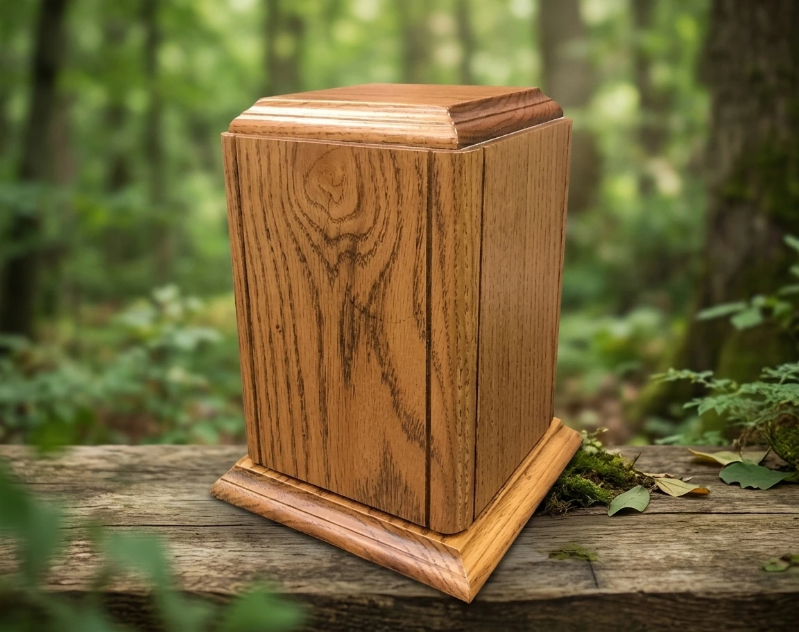 The Classic Oak Urn WU102 by Haven Casket is a finely crafted cremation urn, hewn from rich oak and finished with care to honor a life fully lived. Its warm grain and understated elegance make it a dignified resting place for cherished remains — a quiet tribute that speaks of love, legacy, and the enduring bond between those who grieve and those who are gone. Thoughtfully designed for both display and burial, this urn brings comfort to families seeking something as meaningful as the person it remembers.