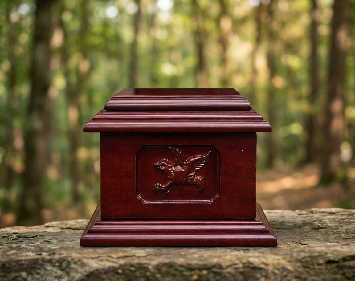 The Soaring Dove Mahogany Urn WU100 by Haven Casket is a finely crafted cremation urn, hewn from rich mahogany and finished with care to honor a life fully lived. Its warm grain and understated elegance make it a dignified resting place for cherished remains — a quiet tribute that speaks of love, legacy, and the enduring bond between those who grieve and those who are gone. Thoughtfully designed for both display and burial, this urn brings comfort to families seeking something as meaningful as the person it remembers.