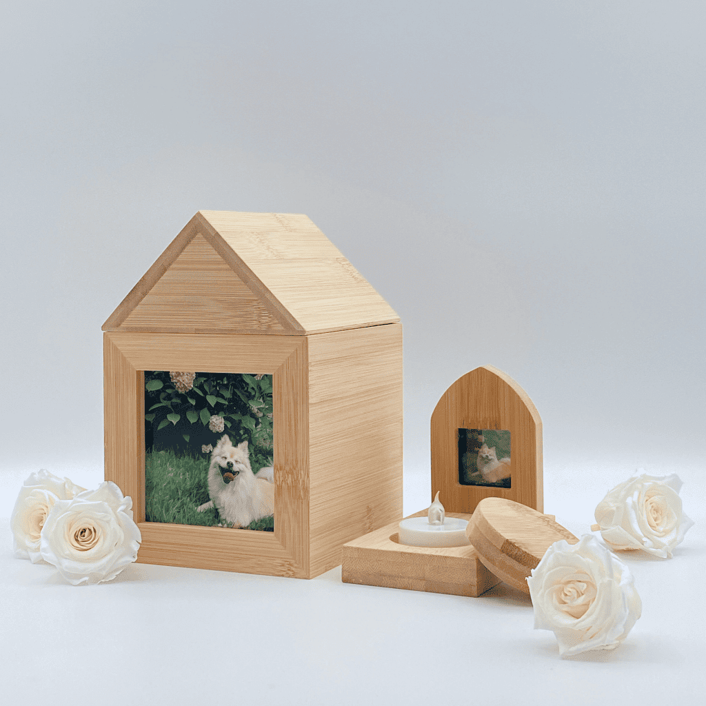 A meaningful resting place shaped like the home you shared. The Sweet Home Urn by Tails Farewell is crafted from natural wood with a smooth finish, designed to sit beautifully on any shelf or mantle. Solid wood construction with a secure closure. Natural grain variations make each piece one of a kind. To choose the right size, the general rule is 1 cubic inch per pound of your pet's body weight.